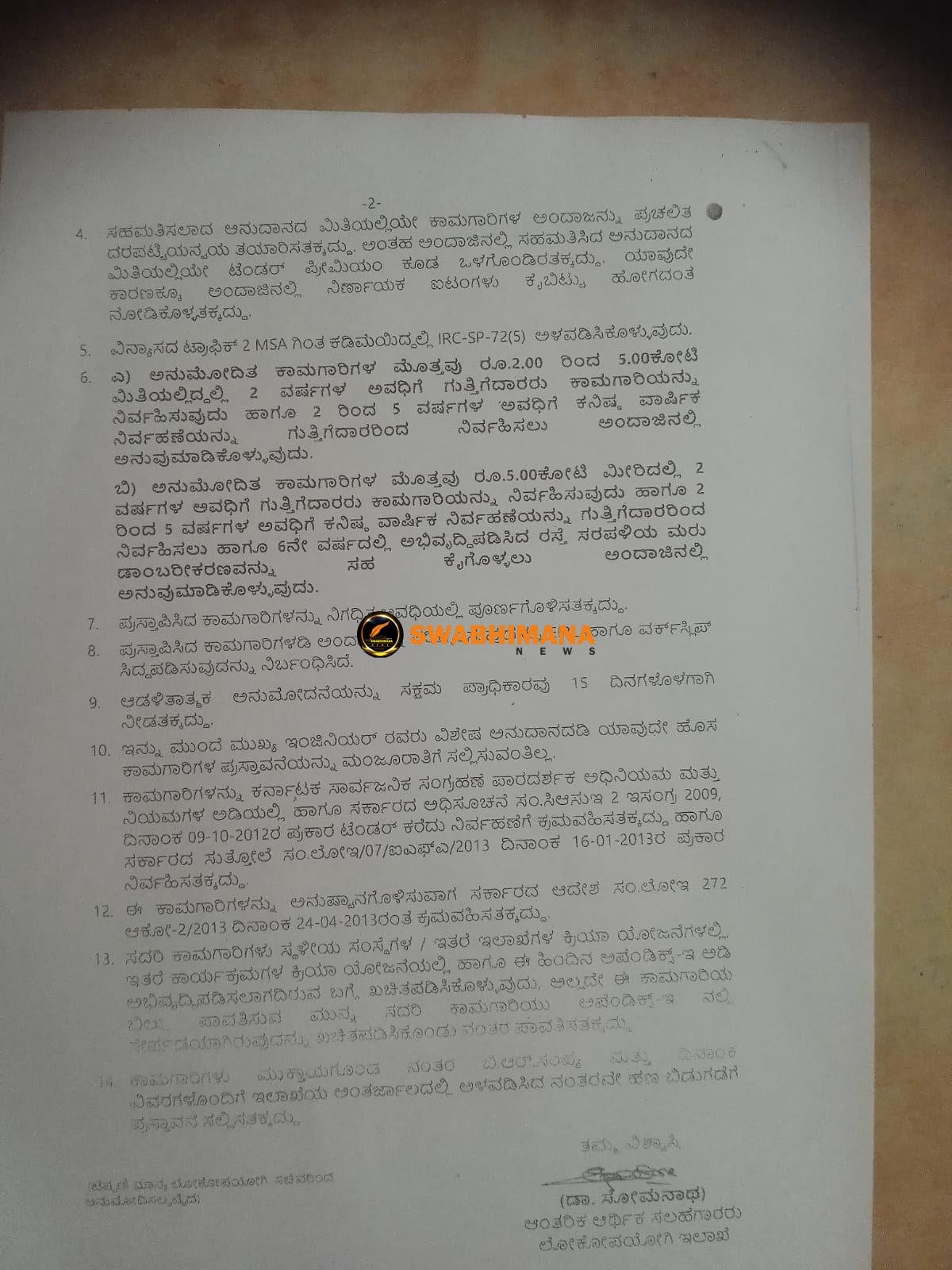 ಕಾಮಗಾರಿಗೆ ಅನುಮೋದನೆ ನೀಡಲಾಗಿದೆ.